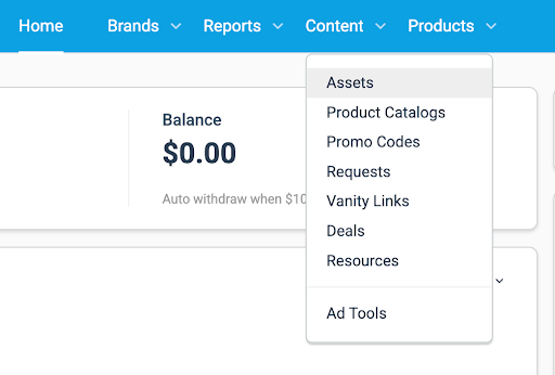 There are also links to each of those main websites as well as some optimized landing pages in the assets section in the form of text links and banners, if you want to include a promotional image.