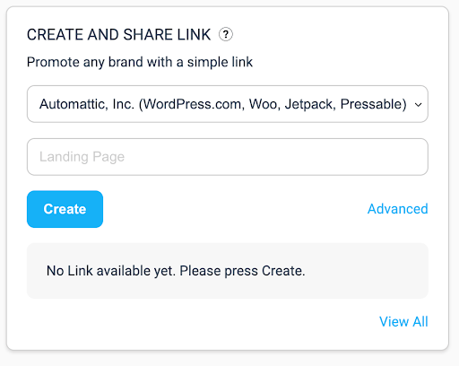 As an Automattic affiliate, you can use Impact’s link-building tool to obtain a URL for any participating Automattic brand. While the default link in the “Create and Share Link” tool is WordPress.com, you can use this tool to link to any of the valid domains in the program.